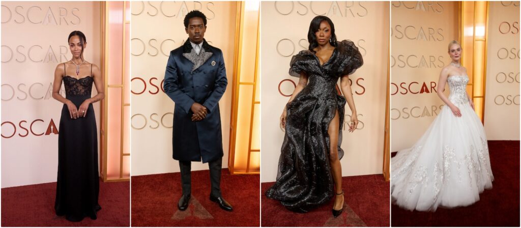From Kate Hudson’s Giorgio Armani privé gown, Ava DuVernay, Wunmi Mosaku and Chase Infiniti’s Louis Vuitton dresses, Nicole Kidman’s Chanel gown to Spike Lee’s gold clutch handbag, the stars shimmered at the movie industry’s biggest night and on the fashion runaway with vibrant colors and cuts.